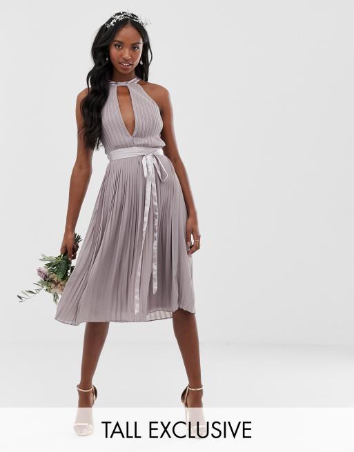 TFNC Tall pleated midi bridesmaid dress with cross back . Source : www.asos.com